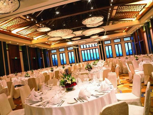 宴会厅与户外草坪相连,占地3,000平米的户外海滩草坪拥有绝佳的海景。新人们在这里见证人生中最美好的时刻,在美丽的亚龙湾边,同享海天一色,海誓山盟将显得尤为真切与浪漫。