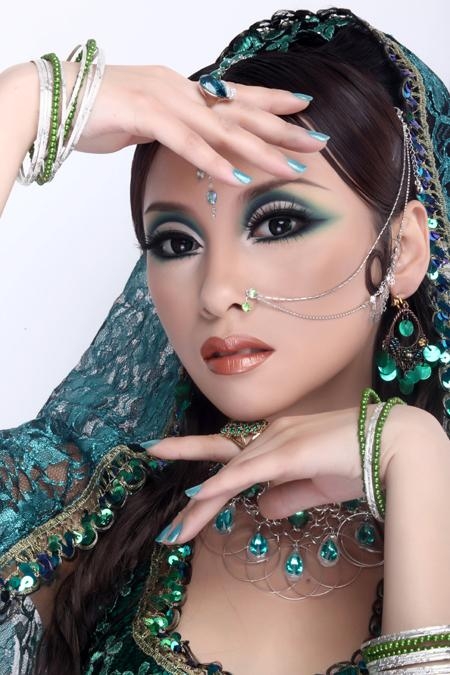 利用绿色的美瞳打造出眼妆的清爽感觉,十分聪明的做法呢。底妆打造的轻薄,利用腮红展现出美好的妆面气息,淡淡的粉色涂抹双唇,整个妆容甜美清爽十分诱人。