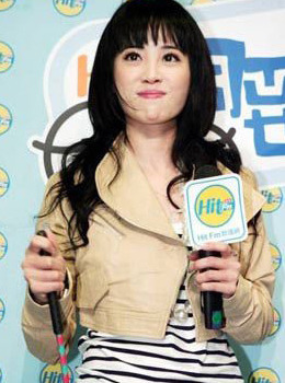 点评:齐刘海加上翘马尾可爱又动人,露肩的粉色斗篷小毛衣提升性感的女人味。