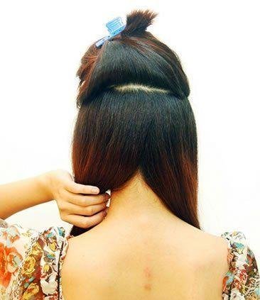 然后,像这样把头发分成两个层次,OMG,分开奕奕才看到,在昨天染发之前,我的头发里面真的全部都黑了!!下面那部分又分成左边和右边~~
