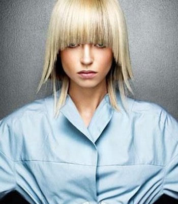 这款造型很像灰姑娘还没有遇见王子前的样子,整齐而厚重的刘海自然的搭在前额上,齐颌的中发,在暮然的回首中流露出飘逸的灵动美,无论什么样的衣服都不会遮掩灰姑娘的美丽。这款发型以绚丽的色彩,别出心裁的配饰将这款看似平常的卷发,打造的非常与众不同,整体凸显出人物的高贵气质,无论是在童话世界,还是在现实生活中,这款发型都是非常吸引人。
