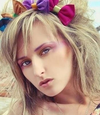 玉米烫造型的金色长发,俏皮的向两侧更大的空间伸展着,宛如绽放的太阳花,嫩粉色的蝴蝶结束在上面,像一只姿态偏偏的蝴蝶栖息在太阳花上,让人产生无尽的联想。
