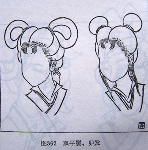 双平鬟属于双挂式之梳编法,其梳编法是将发平分于两侧。再束结成环,使其对称而自平垂。挂于两侧。这种发式在仕女图中颇为多见,多用于未婚少女或儿童。
