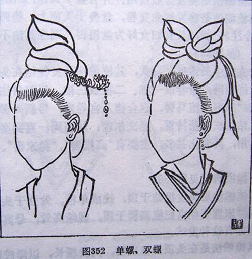 单螺其梳编法是将发股集结,盘叠如螺。置于头顶上,在永泰公主墓石椁内西面北次间之雕饰,亦有些类发式。