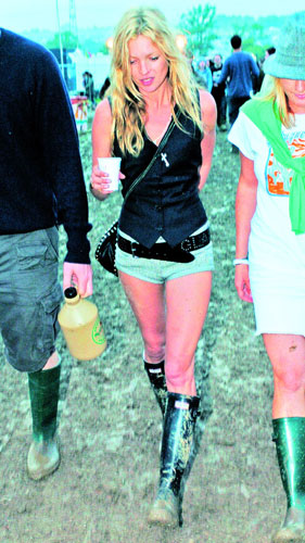 上身的小背心与牛仔短裤做由深到浅的呼应,而皮带与靴子是Kate Moss画龙点睛的一笔,皮革质感的配饰容易显得有型又不会太重。