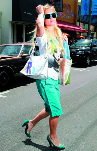 穿五分短裤的先决条件是:小腿一定要够长!Paris Hilton的这条及膝仔裤就显得她小腿略短。的确,有钱也买不来一切啊。
