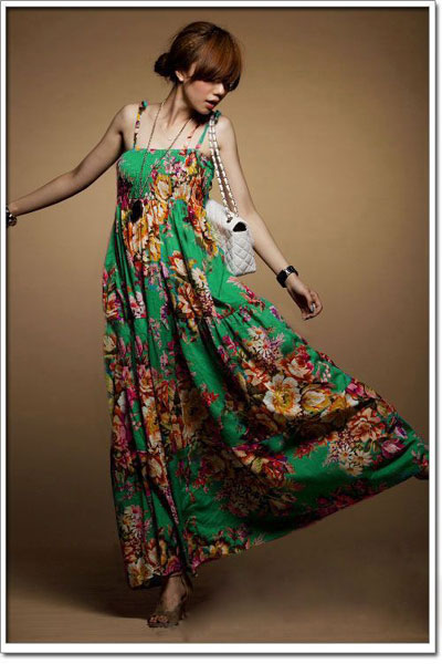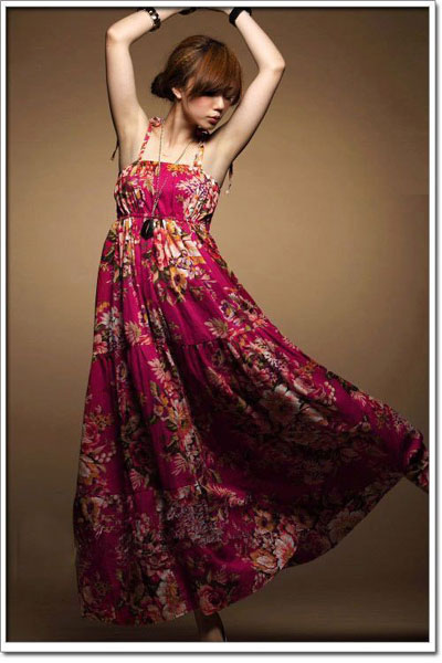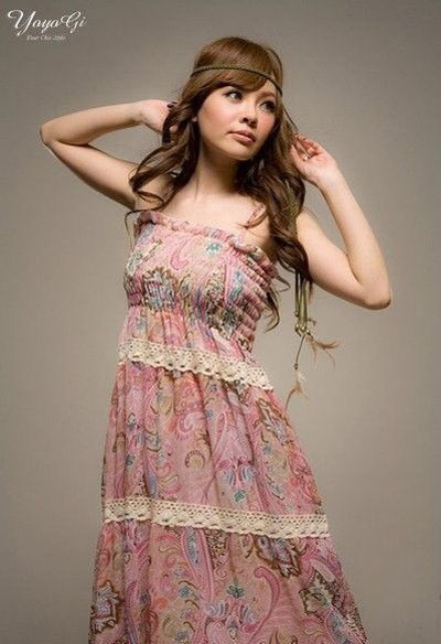 时尚点评:粉红色的吊带长裙很有女人味,粉粉的颜色适合搭出妩媚的淑女气质,缀边的蕾丝让裙子不会感觉过于单调,异域风情的图案很有美感哦,搭配的发带让你的搭配更具美感,波希米亚的时尚魅力让你对他一见钟情!