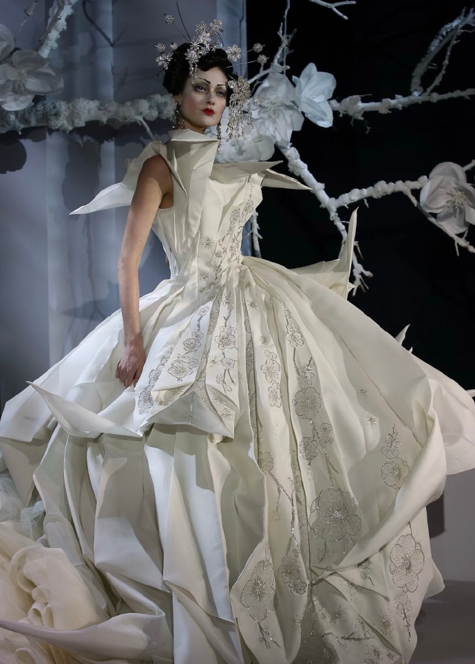 Christian Dior Haute CoutureSS 2007又是海盗爷时期的巅峰之作,灵感来源普契尼歌剧蝴蝶夫人,再次证实了他在时装秀中唤起美丽、敏感、叙事和情感的独特才能!他将折纸艺术演绎得优雅高贵浪漫。