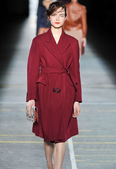 酒红色大衣适合成熟女性,不但举手投足间尽显优雅,还能散发出的知性气质。不过切记酒红色外套最好是和经典的配饰相搭配,比如黑色皮手套、细皮带或尖头高跟鞋等。