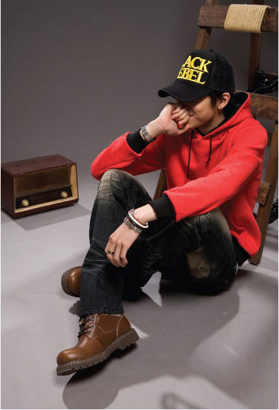 如图左侧,当印花卫衣单穿的时候整体是一种街头运动,或者说是有一点大男孩的感觉。但是当卫衣,由其是兜帽卫衣和韩版单扣合体西装单配的时候,这种雅皮的感觉由然而生,虽然图中的牛仔裤的搭配使得整体还是比较街头,但是和单穿套头卫衣相比已经完全变了一种感觉。有些款式就是受到这种搭配的启发,干脆开发了一种卫衣和西装结合的假两件套外套
