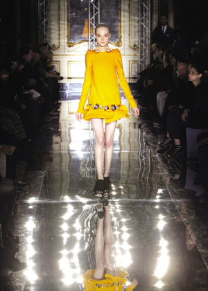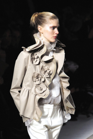 最适合在女孩女人之间徘徊的MM的Miu Miu,用鲜艳的色彩、蝴蝶领、花苞裙等。Erin Fetherston今季还是复古为主题。Valentino秋冬季秀场满眼荷叶边与蕾丝,加入大量荷叶边的领子袖口裙摆,正装也变得格外柔美。