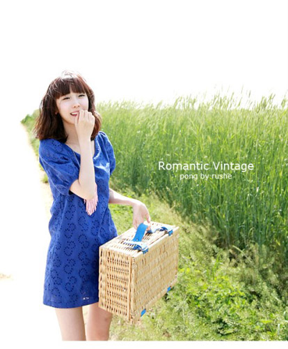 情景独白:和他开车去乡下探亲,他帮我挑了这款鲜艳的蓝色镂空连衣裙,说很衬我的肤色。我配上了肉色的流苏项链,这样乖巧的样子一定能讨长辈喜欢吧!
