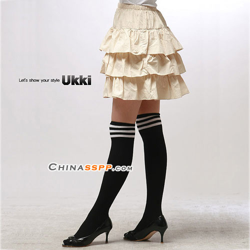深色长袜搭配迷你裙,有助于在视觉上收缩腿部赘肉