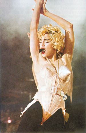 Jean Paul Gaultier在1983年的内衣发布会上,将“导弹式胸罩”穿在男式条纹套装外面。但这种内衣外穿的概念得以真正流行,应归功于麦当娜1990年世界巡演上穿上Gaultier设计的金色锥形胸罩,令世界瞩目。