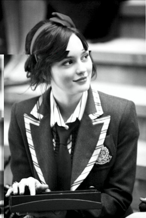 最Blair的造型通常是一件vintage风格如Oscar de la Renta的长罩衫,一条Wolford的紧身裙,Philip Lim设计的发带,颜色或花纹抢镜的Stretsis长袜,再加上珍珠项链