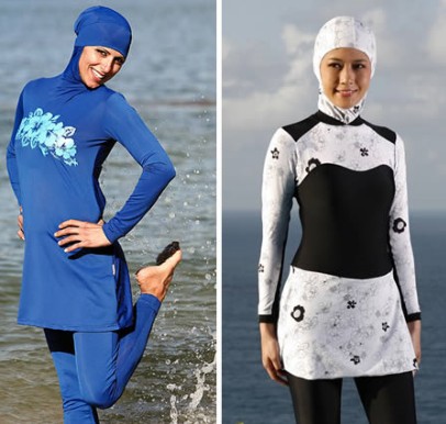 头巾比基尼泳衣由澳大利亚Ahiida公司设计。它是专门为了提高穆斯林妇女们的生活水平而设计的一款符合伊斯兰教理念的泳衣。至少这些美丽的小姐可以剩下一些防晒霜的钱了。