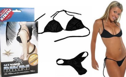 一家德国公司发明了这种神奇的比基尼,只要女孩子一穿上它在水里游泳,这种比基尼就会消失不见。这件性感的比基尼消失的原因是它能在水里溶解。这件泳衣看起来,摸起来,穿起来都像是及其普通的比基尼,唯一不同的一点是制作它的材料是在水中一会儿就溶解了的特殊物质。被称为“赤裸比基尼”的它可以为那些被抛弃的花花公子们报一箭之仇。