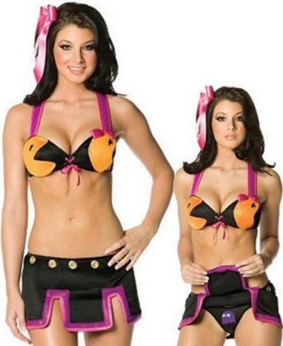 这是给你的鬼精灵女朋友最好的礼物。这件吃豆小精灵比基尼最有趣的地方藏在它的底部。想象一下他不想被吃掉时的样子。