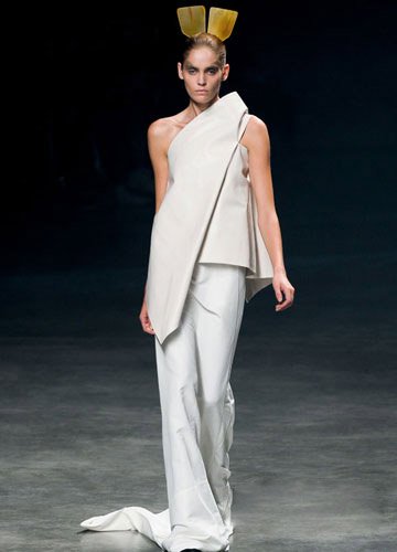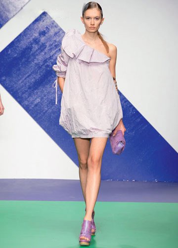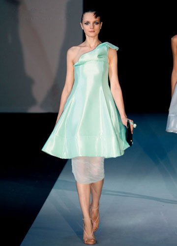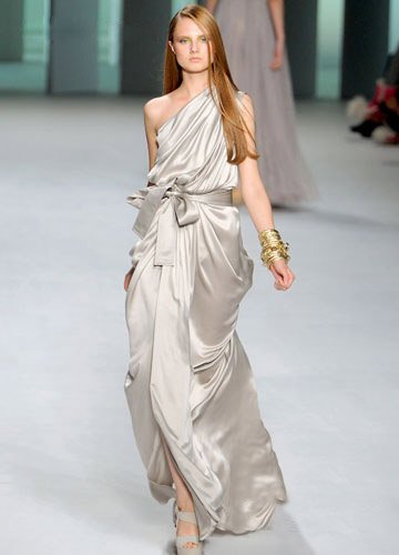 从来没有那么多单肩裙在一季同时出现,设计师们的潜台词:性感不是露出双肩,而是香肩半露。单肩裙领口特殊的斜边趁此在胸前画出一道优美的弧线,美丽丝毫遮挡不住,从优美的裙装中柔和地流露。