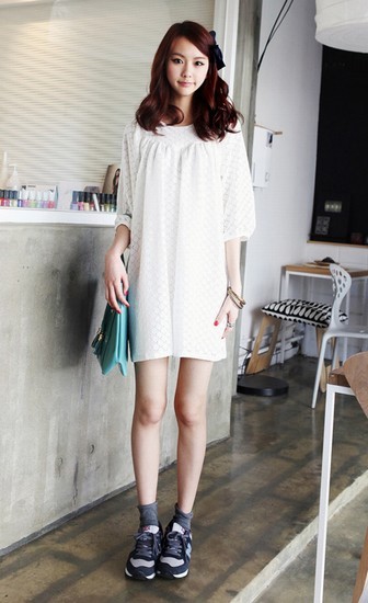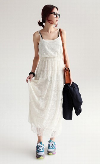 没想到吧,这么唯美的衣裙还可以混搭运动鞋。