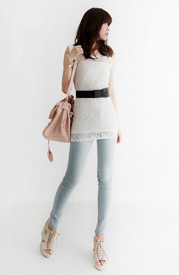 白色是春夏的主要流行色之一,如果担心纯白色太简单不够有女人味儿,那么白色的蕾丝无疑是最好的选择,细腻、丰富,近乎于穿上婚纱的新娘,那份感觉足以唤醒心底那份纯美的爱意。