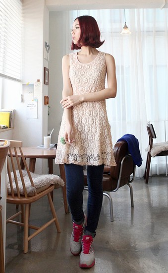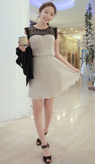 如果觉得自己不适合穿蕾丝,又耐不住这股潮流的涌动,就用一些有蕾丝元素配搭的裙装来过下瘾吧。