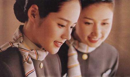 一向尊重服饰质感剪裁的韩国将其特色渗透在航空小姐的制服上。别致的制服和独特的系扣丝巾搭配在一起,严谨而又不单调。收起的头发清新整洁,倍增亲切感。