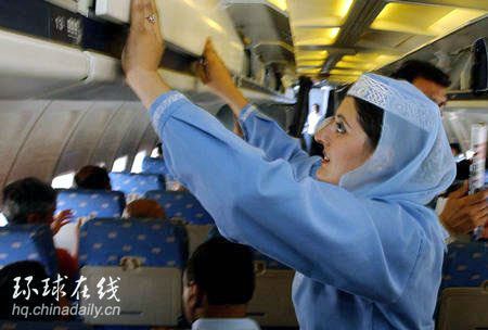 有宗教信仰的国家自然不同,不过依然可以从服饰的花色刺绣上做文章。传统的服饰裹住的美丽的空姐,但是鲜艳亮丽的