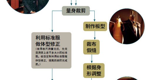完全定制是西装师傅以手工缝制,整个过程包括打板、假缝等动作,因此能作出高品质、穿着舒适、外表美观的西装。相对的跟板型定制比起来,不但价格较高,所需时间也较长。