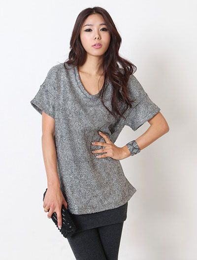 清凉搭配:银葱色短袖T恤 + 打底裙裤
