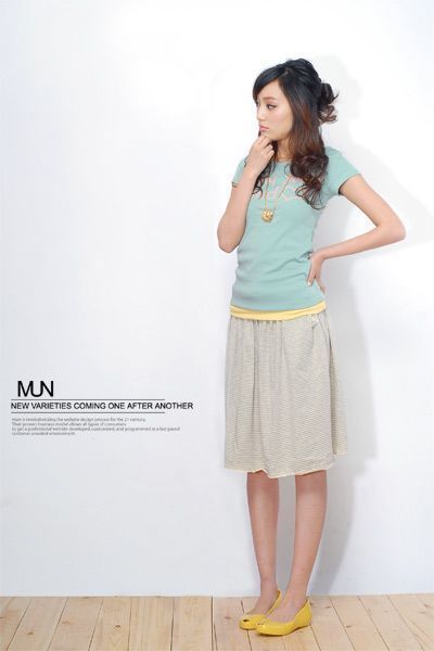 不挑人的T恤颜色在女孩中很有人气哦,淡淡的色调符合春夏的纯净感,搭配牛仔短裙和球鞋即可打造运动休闲系的甜美女孩!