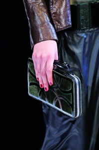 纯黑色的包袋,虽然百搭却不容易引人注目,因此挑选起来可不能忽视了细节,有时候一点点的改变就足以让你备受瞩目。 Chanel的经典菱形格纹、Bally调皮的鸵鸟皮或是Ferragamo的鳄鱼皮手袋,都是表现品味的上乘之选。而对于从事一份有很多着装要求的职业的年轻女性来讲,漆皮的黑色款式在稳重的同时又加入了一些新鲜的娇俏,十分适合“套装一族”的新鲜血。