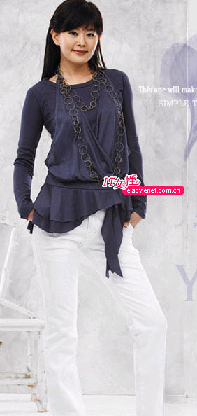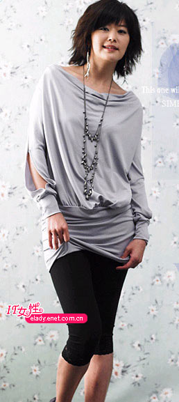 女人味十足look——加长收腹的蝙蝠衫+紧身裤七分,当然,高跟鞋在这是必然的。