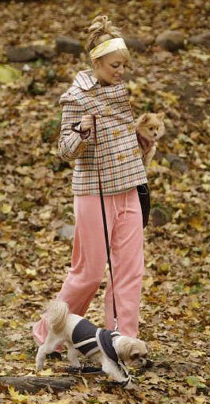从妮可·里奇 (Nicole Richie) 的例子看出,双排扣大衣什么都可以配,甚至运动裤……