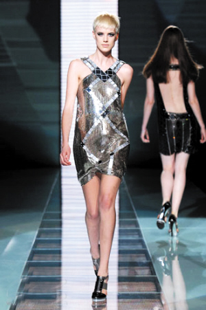 依旧闪耀的金属色服饰虽然抛弃了以往强烈的视觉冲击,各种尺寸、样式的钉珠、亮片及珠片的点缀却使其更具立体感,而在相对厚重的毛衫及大衣上装饰珍珠或对比强烈的金属片则会改变以往老气横秋的印象,还MM们一个生动清新的秋天。