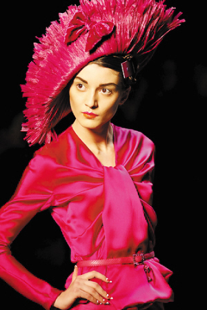 有着尖细鞋尖的长靴在这一季被长及脚踝的短靴抢尽了风头。可爱的小圆头配以拉链、纽扣或细带等装饰,短靴的烟筒跟设计突出舒适性,一扫往日十寸细跟带来的性感折磨,是新一季血拼的必需装备。在去年大放异彩的宽大手袋依然是这个秋冬的首选,以手拎包为主,尤其注重流苏、钉珠、羽毛及带链等细节装饰,手柄设计独特的日装手袋也满足了白领们对时髦又实用的公文包的需求。随着复古风潮对二十年代的缅怀,精致讲究的帽子在配饰中占据主导权,夸张的“new look”复古款,帅气的飞行员和机车手帽子,活泼的针织帽,或者被改良的军装贝雷帽,种类繁多令人眼花缭乱,认为自己不适合戴帽子的女士尽可大胆尝试一下。