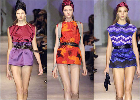 图2:Prada把迷你裙设计得只比上衣长一点,也有皱褶超短裙。