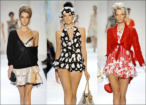 图3:Moschino的迷你裙甜美还流露出率真,裙摆的两层荷叶边或皱褶泡泡实在招人喜欢。