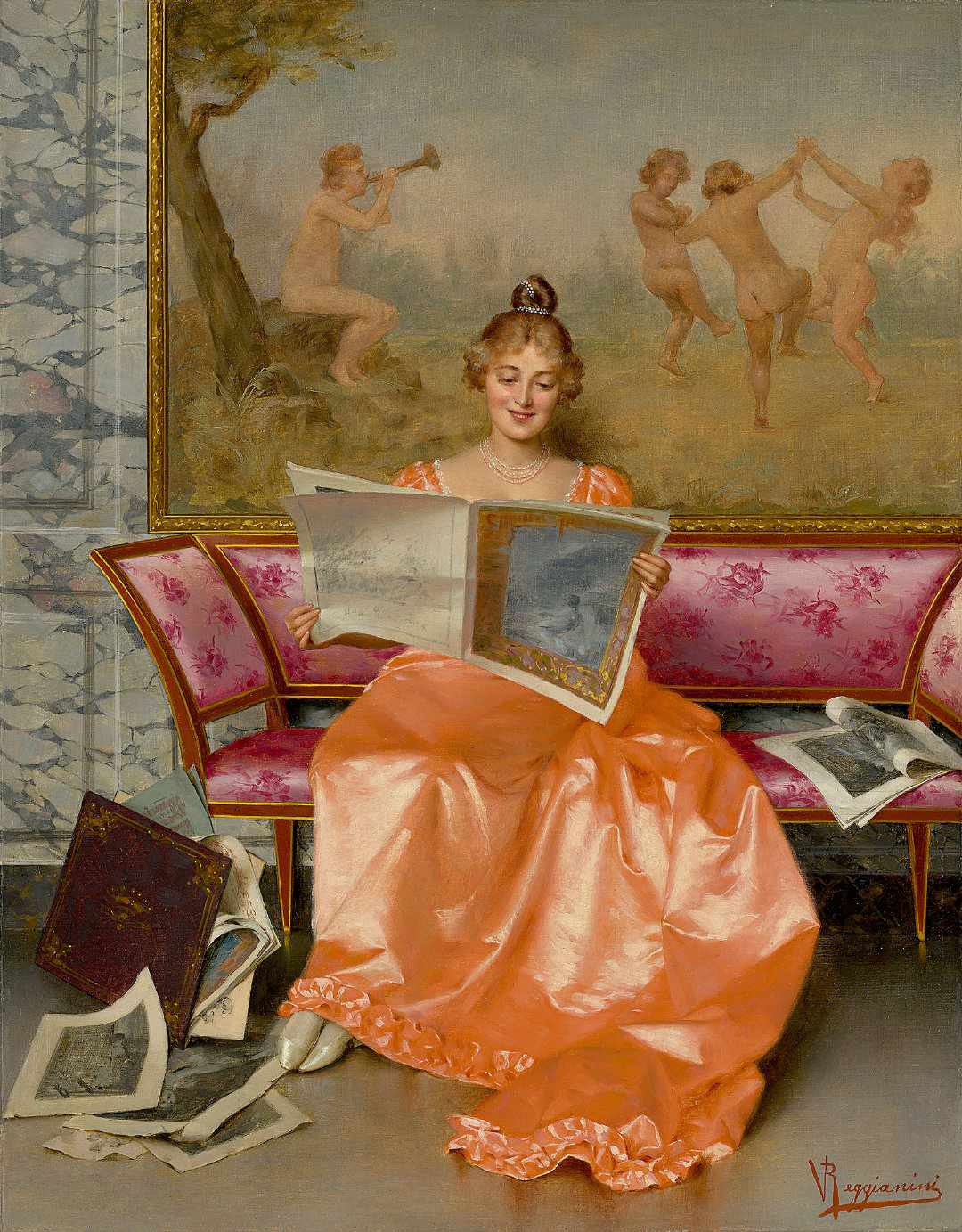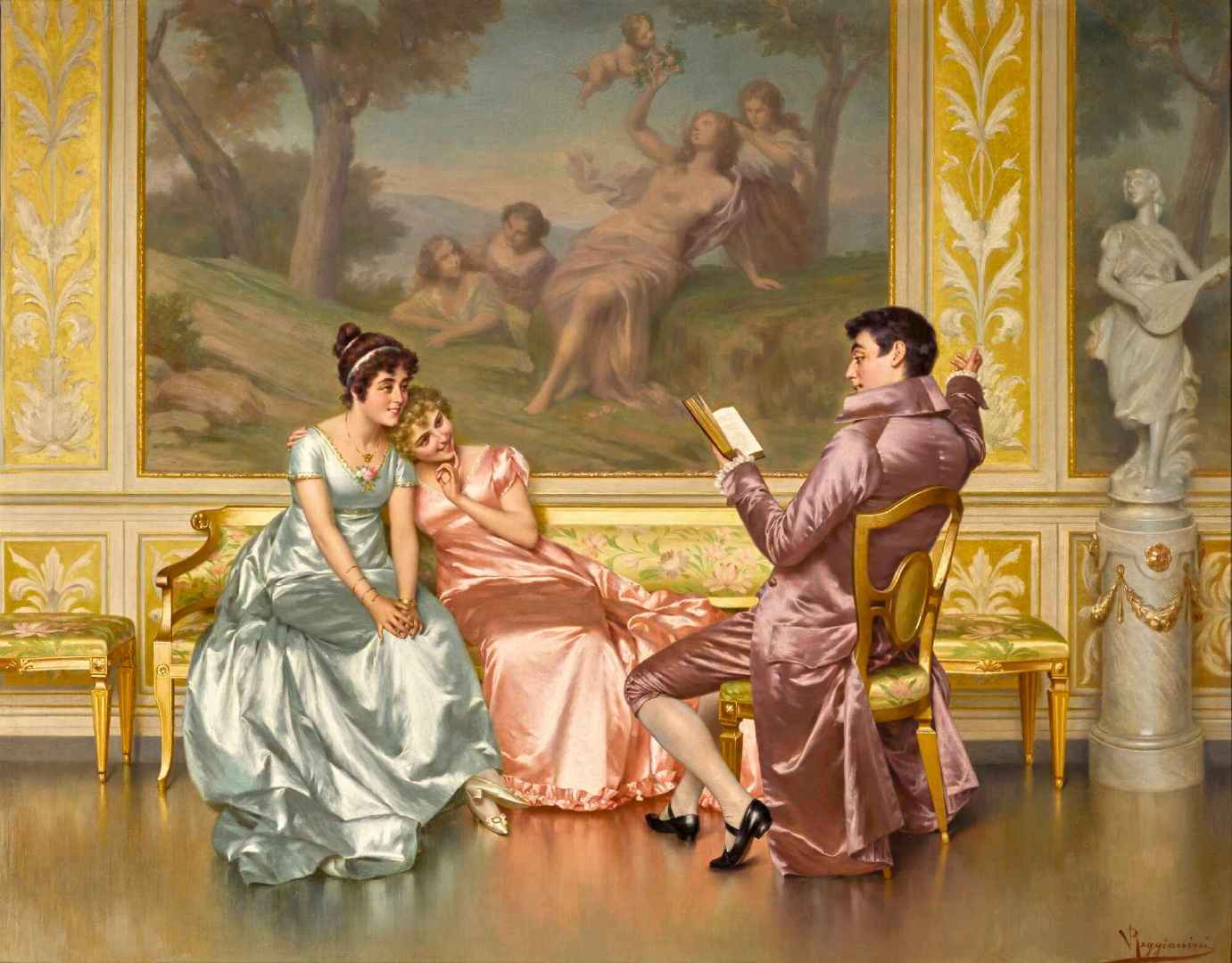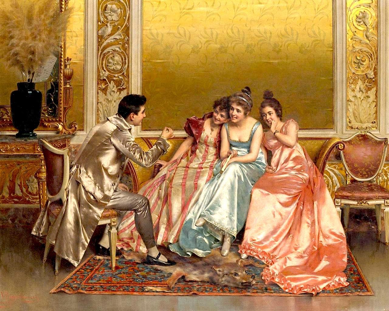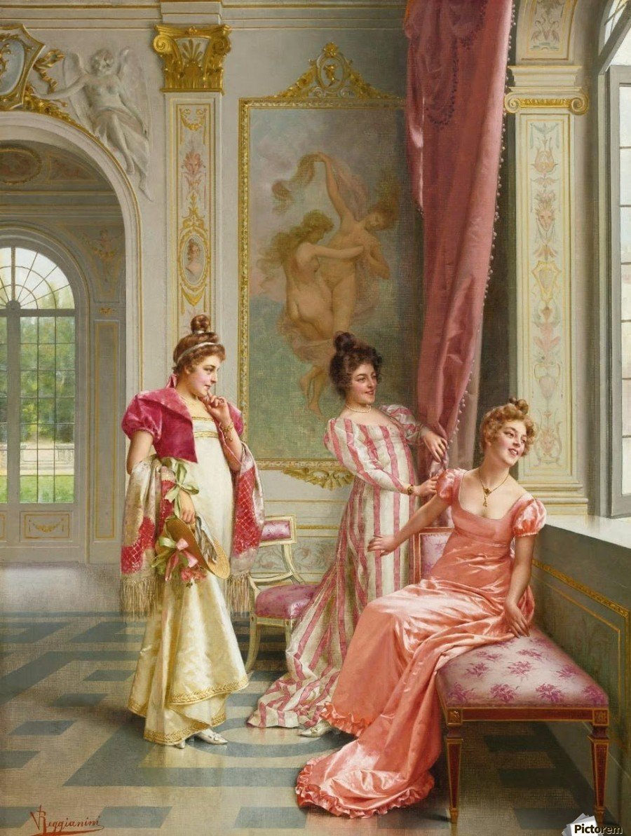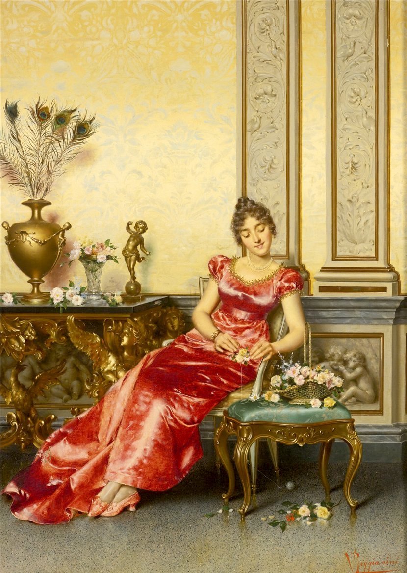 Victtorio Reggianini是19世纪意大利🇮🇹画家,他的画总能让人感到轻松浪漫,对服饰质感的描绘也是无人能及