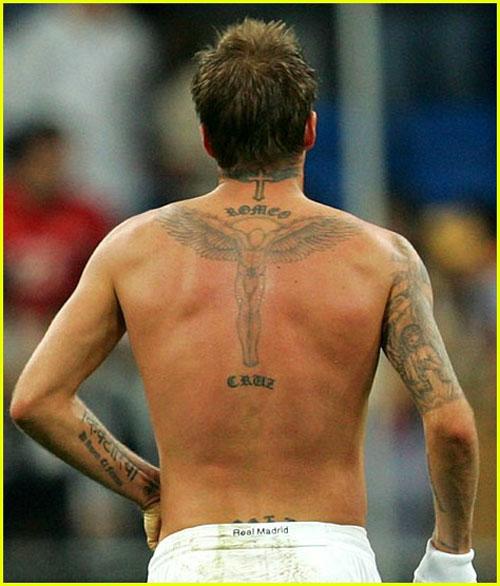 小贝后背上的护天使是布鲁克林出生后纹上的,有保护自己儿子的含义