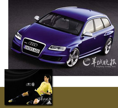 卡卡(巴西) 去年年底,皇马的赞助商奥迪邀请所有银河战舰的球员参加了位于西班牙马德里市郊的Xanadu Snow Park新车活动,皇马的超级球星们完成了一项雪地安全驾驶训练项目,项目内容包括一节障碍滑雪课和试驾奥迪A5双门跑车和TTS车系。在发布会上,银河战舰每名球员都挑选了一辆赞助商免费赠送的车。而卡卡则挑选了奥迪有史以来动力最强的旅行车新奥迪RS6 Avant,该车搭载了双涡轮V10引擎,最大功率达到了426Kw,百公里加速不到4秒,在欧洲售价12万3000欧元。奥迪RS6 Avant搭载的就是通过缩短冲程改装而来的5.0L排量的V10 TFSI双涡轮增压发动机。这台V10双涡轮增压发动机有绝对的潜力跑310KM/小时。变速箱依旧采用的是Tiptronic变速箱。该变速箱还可以通过方向盘后的拨杆改成序列控制式。RS6车的行驶系从车轮制动装置到悬挂系统也经过整体改良,以便发挥强劲动力。