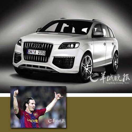 梅西(阿根廷) “爱宝马,驾奥迪”最足以形容梅西对车的选择。熟悉梅西的球迷都知道,梅西最喜爱的车是宝马。而且,梅西最近还受邀成为国内自主汽车品牌奇瑞旗下的瑞麒汽车的品牌代言人。不过,梅西日常上下班的交通工具却是一辆奥迪q7。因为奥迪是巴塞罗那俱乐部的赞助商,为每一名球员都免费提供了一部座驾,所以,你到诺坎普球场去参观,会发现车库里停着清一色的“四环”。其实奥迪正是最符合梅西目前身份的汽车。奥迪在高档豪华车中算小弟,但最近两年它已逐渐成为其中的新贵。年轻、有爆发力,同时还拥有细腻之美。奥迪生长在高手中间,已练就一身绝技,不管是马力还是速度都能做到绝佳。即使是在高手群中,奥迪也能绝妙出击,夺取尊严和地位。