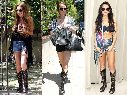 时尚轮回,复古风来袭!琳赛-罗翰在这个春季的柯契拉音乐节上穿回了她09年夏天最爱的阿瑟丁-阿拉亚镂空靴。结构感的设计充满了超时空美感和未来主义精神,奢华而摩登,如星球战士般横空出世。