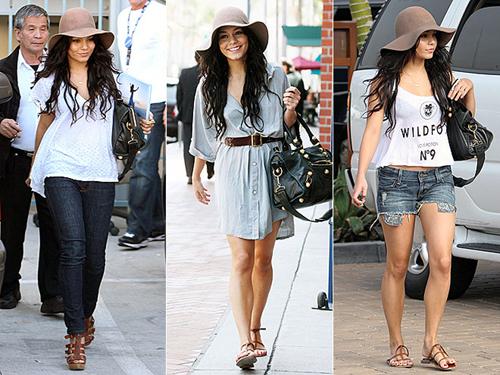 比起墨镜,凡妮莎-哈金斯更喜欢用帽子来抵挡烈日,在洛杉矶外出走动时她头戴Free People宽沿帽频频,充满法式浪漫情调,优雅质感,重回赫本时代。