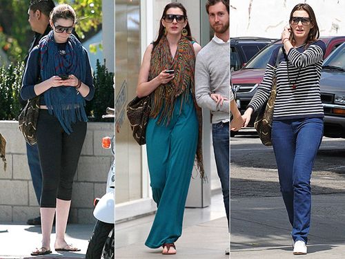安妮-海瑟薇以灿烂异域吉普赛女郎Look横行街头,搭配Cleobella的"Nikki"系列纹路包,浑身散发出浓郁浪漫的度假风。