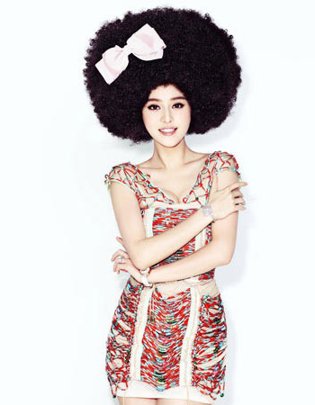 时而长发妩媚,时而短发干练,百变女王范冰冰很能在不同的场合驾驭自己万化的造型。在为某时尚杂志拍摄的大片中,范冰冰一头夸张的爆炸头Rebecca假发造型再次令人惊艳,想必金庸笔下的金毛狮王也要自叹不如吧。