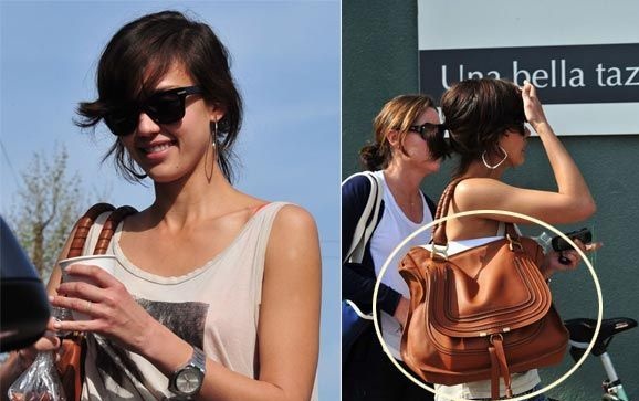 杰西卡-阿尔芭咖啡色机车皮衣帅气逼人,窄腿裤、帆布鞋尽显街头运动风。