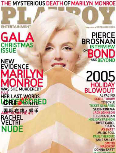 创刊50周年的老牌男性杂志《Playboy》的封面清一色丰乳肥臀的性感女郎。最早的一张封面是创始人赫夫纳仅花了500美元买到的一张玛丽莲·梦露的性感照片,这张照片成就了一本最知名的男性杂志。