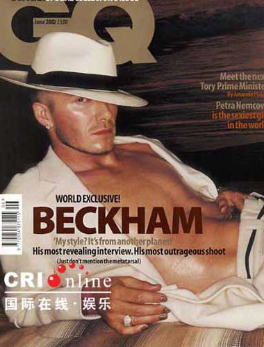 2002年5月《GQ》英国版,万人迷贝克汉姆挑战自身最大性感限度,近乎全裸登上杂志封面,表现自然得连摄影师都要傻眼。