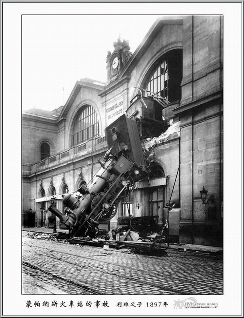 7 这个戏剧性的场面,很像是画家德·希里科摆弄铁路运输的造型摆砸了,把火车头栽了下来。车头上方的车站大钟,还像往常一样为人们的事务计数着时间。事件不仅在当时有新闻价值,就是到了超现实主义阶段也未减身价,到那时,它又象征着现实生活出了天大的问题。能用胶片捕捉到这样的场面简直是个阴谋,因为早期的报道摄影通常依赖这种可以预见的、会耸人听闻的事件,如飞机起飞和热气球出发等。法国摄影家和收藏家们一直非常喜欢奇异的照片,因为它们代表了一种颠倒的或可供选择的历史,就像由热情的票友串演的戏一样别有风味。这张非常有名的照片是利维父子的藏口。利维父子是一家照相馆的字号,1970年并入罗杰·瓦莱工作室。